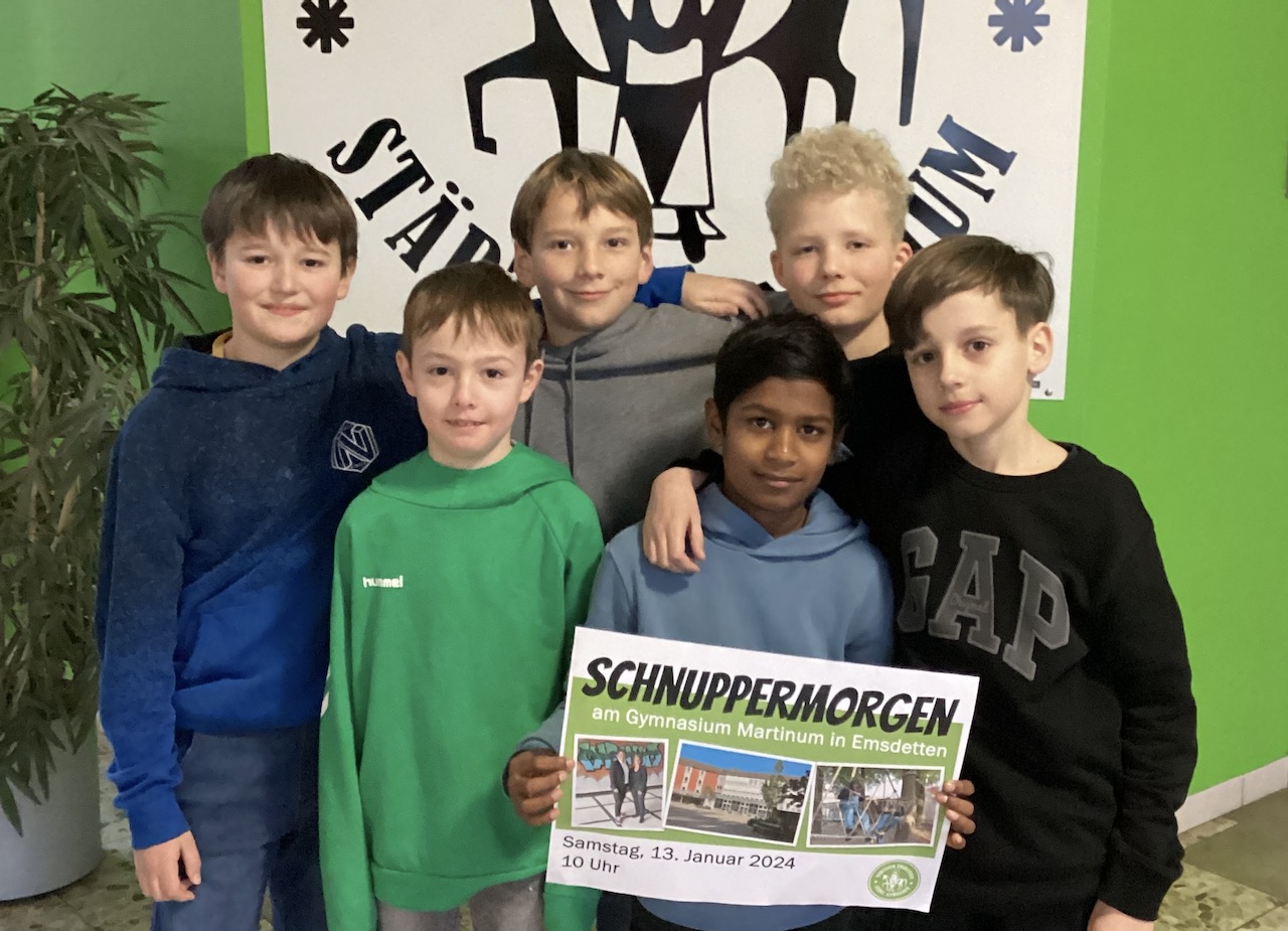Am 13.1.2024 findet der Schnuppermorgen am Gymnasium Martinum statt. Der Beginn ist um 10.00 Uhr in der Aula (Eingang A 3). An diesem Vormittag stellt sich das Martinum mit vielen Unterrichtsfächern und zahlreichen weiteren Angeboten bei allen Viertklässlern und ihren Eltern vor. Für jüngere Geschwisterkinder wird eine Kinderbetreuung angeboten. Im Anschluss an den Morgen sind alle zum Mittagessen in der Mensa eingeladen.