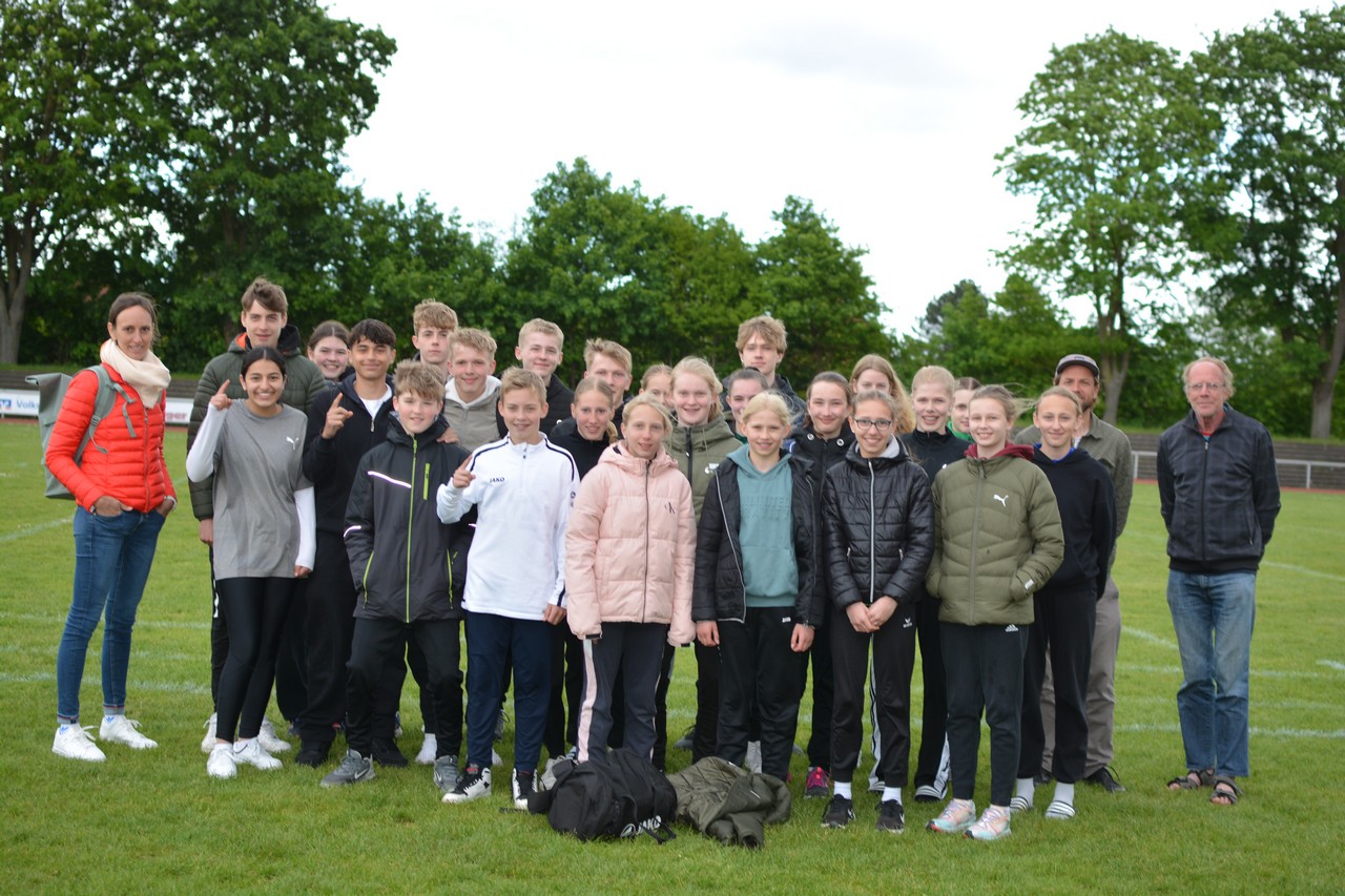 Bereits früh morgens versammelten sich alle SportlerInnen der Jahrgänge 2008-2011 an der Schule,um später mit dem Bus zum Jahn-Stadion zu fahren.Hier machten sich dann alle gemeinsam warm und starteten ein wenig später in ihre Disziplinen, also zum Beispiel Kugelstoßen, Hochsprung, Sprint und vieles mehr. Jede/r SchülerIn wurde tatkräftig unterstützt und alle fieberten mit, wodurch eine grandiose Stimmung entstand.