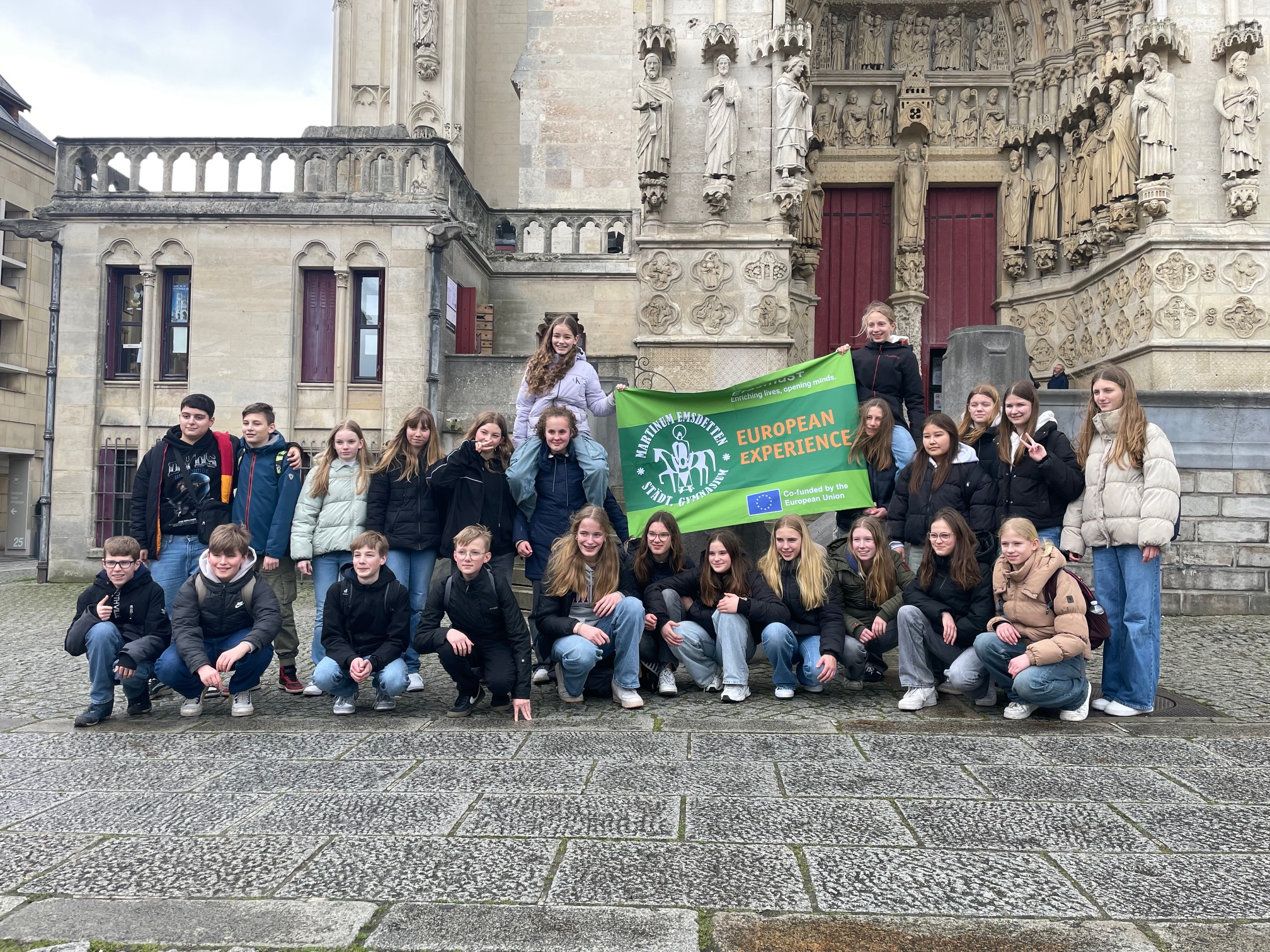 Schon seit einigen Wochen standen die Jugendlichen über soziale Medien mit ihren Austauschpartnern in Kontakt – und dennoch war die Aufregung kurz vor der Ankunft spürbar. Schließlich war es schon eine große Herausforderung, den ersten Abend allein in einer Gastfamilie zu verbringen und sich in einer Sprache zu verständigen, die man erst seit 1,5 Jahren lernt. Dennoch meisterten alle Schülerinnen und Schüler diese Aufgabe mit Bravour und konnten freitags von vielen interessanten Situationen mit ihren Austauschpartnern berichten. Anschließend konnten sie dann die Unterschiede zwischen dem Schulalltag in Deutschland und in Frankreich erfahren, indem sie drei Stunden lang am Unterricht ihrer Austauschpartner teilnahmen und dann gemeinsam mit ihnen in der Schulkantine essen konnten. Nachmittags war dann Zeit, die Stadt Amiens mit ihrer bekannten Kathedrale zu besichtigen.