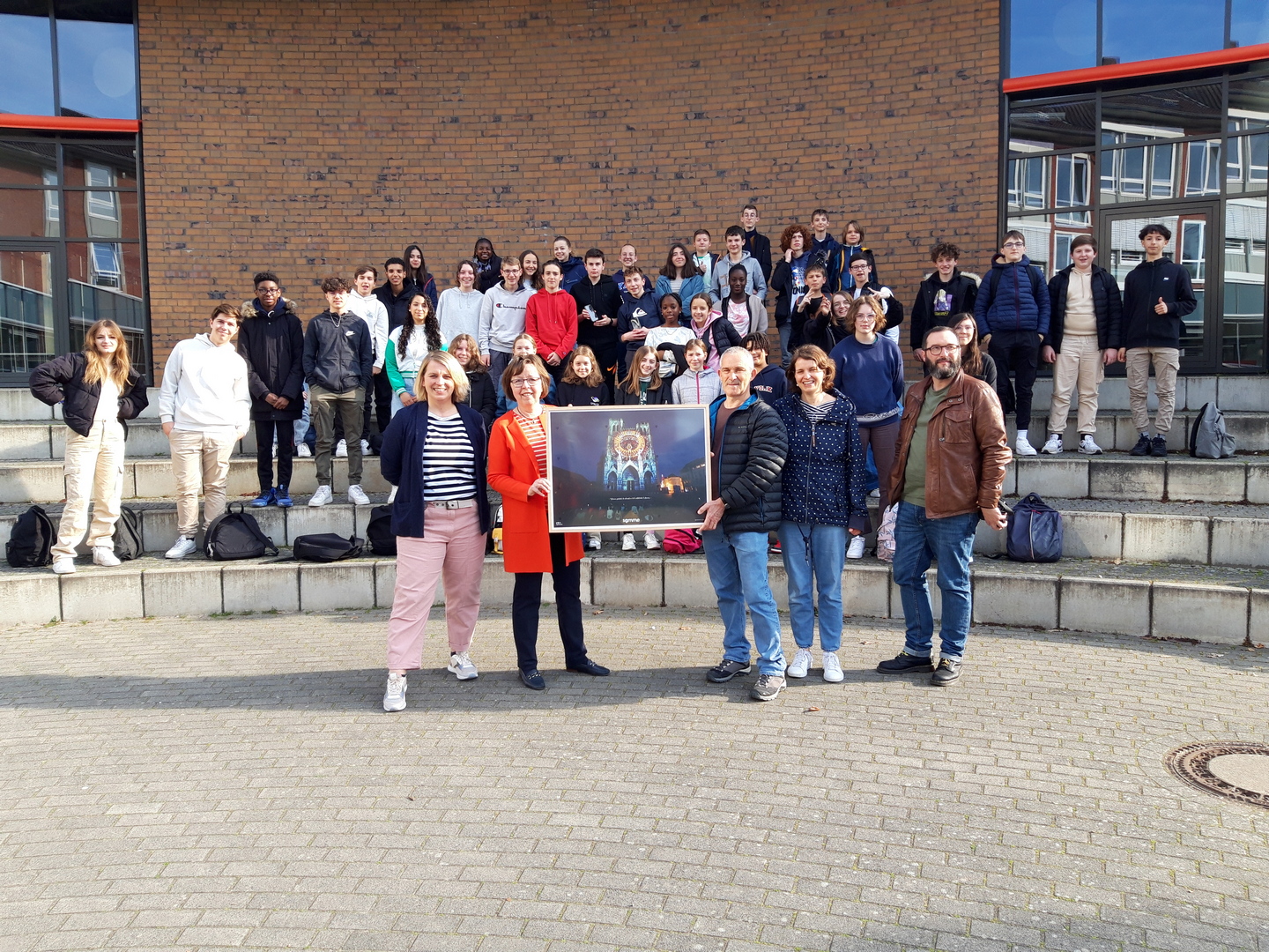 Deswegen fahren wir bereits seit dem Jahr 1980 traditionellerweise mit den Schüler*innen der Klasse 8 nach Amiens. Unsere Partnerschule ist das Collège Jean-Marc Laurent. Eine Woche verbringen die Emsdettener Schüler in ihren Gastfamilien, lernen die Stadt Amiens, ihre beeindruckende Kathedrale, aber auch das ganz alltägliche Leben in Unterricht und Familie kennen.