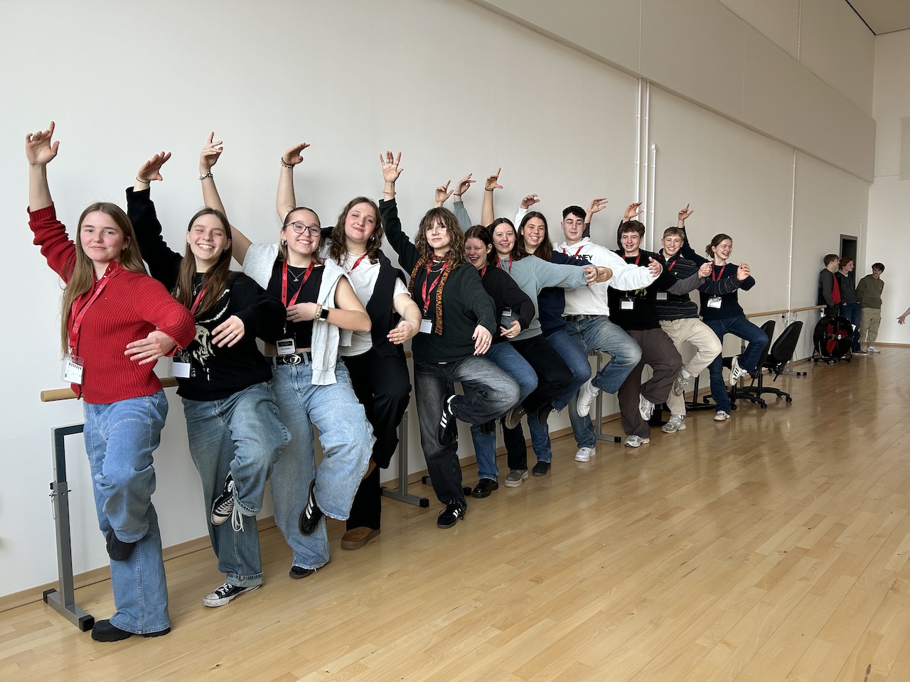 Am Montag konnte die deutschen Teilnehmer*innen dann das Schulleben am Abbeygate Sixth Form College kennenlernen. Bei einer Schulführung durch die englischen Schüler*innen Wilf Menuge und Lana Norton-Berry konnten sie verschiedenen Räumlichkeiten der Schule besichtigen. Marion Quellenberg-Brune, die nicht nur Englisch sondern auch Sport am Martinum unterrichtet, zeigte sich besonders begeistert von dem Tanzstudio und nutzte direkt die Gelegenheit, eine kleine Tanzstunde mit den Schüler*innen zu initiieren. Bei einer gemeinsamen Deutschstunde zum Thema „Jugend und Politik in Deutschland“ sowie der Hospitation in verschiedenen anderen Unterrichtsfächern konnten die deutschen Jugendlichen dann einen Eindruck vom Unterricht an der Partnerschule gewinnen.