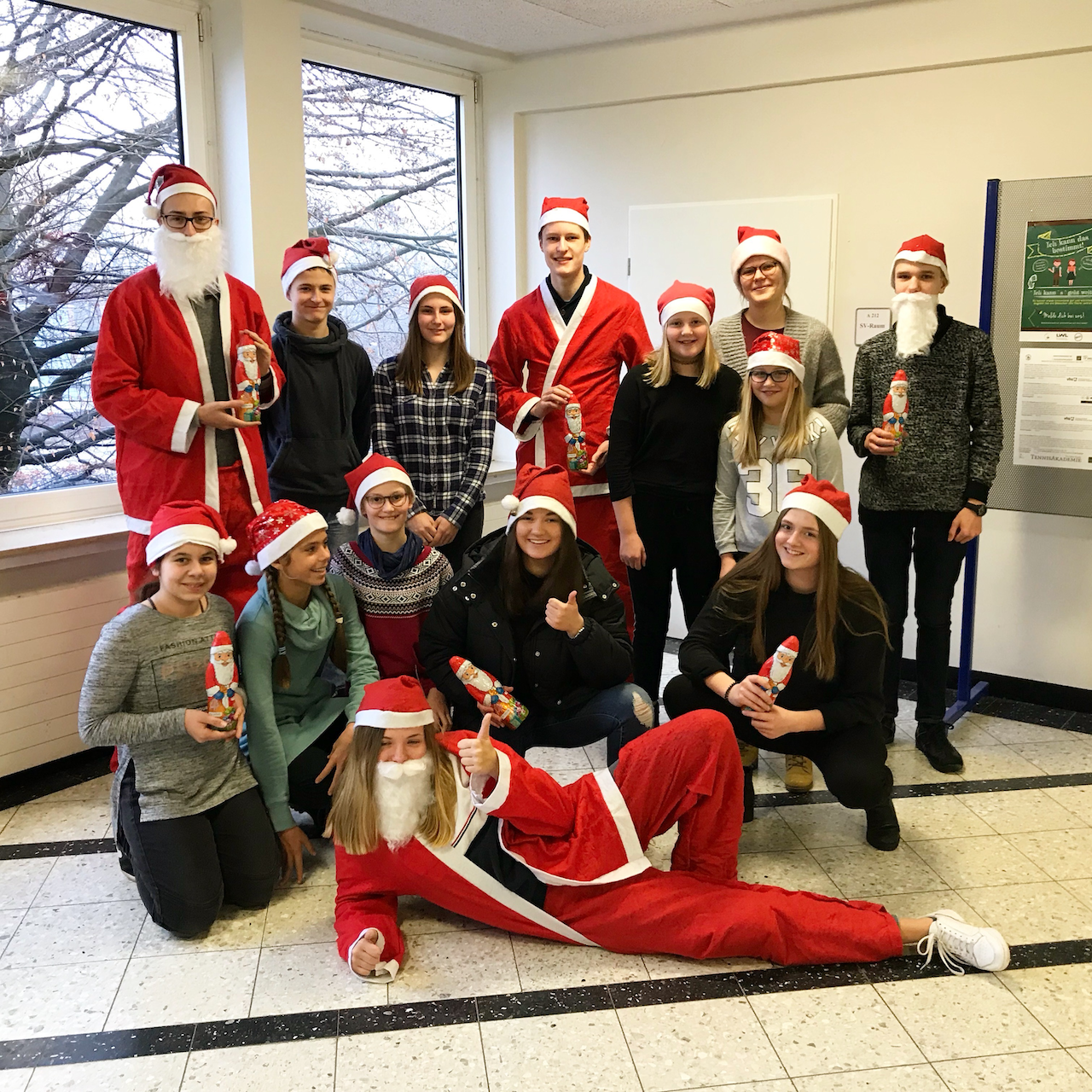 In jedem Jahr wird von der SV am Martinum die Nikolausaktion durchgeführt. Dabei machen wir es durch alle Klassen hindurch möglich , dass sich alle Schüler*innen gegenseitig eine Freude machen. An verschiedenen Tagen können Botschaften und Nikoläuse gewichtelt werden, die dann schließlich am 6. Dezember von Vertreter*innen der SV in den einzelnen Klassen verteilt werden.