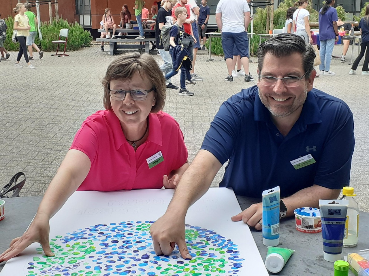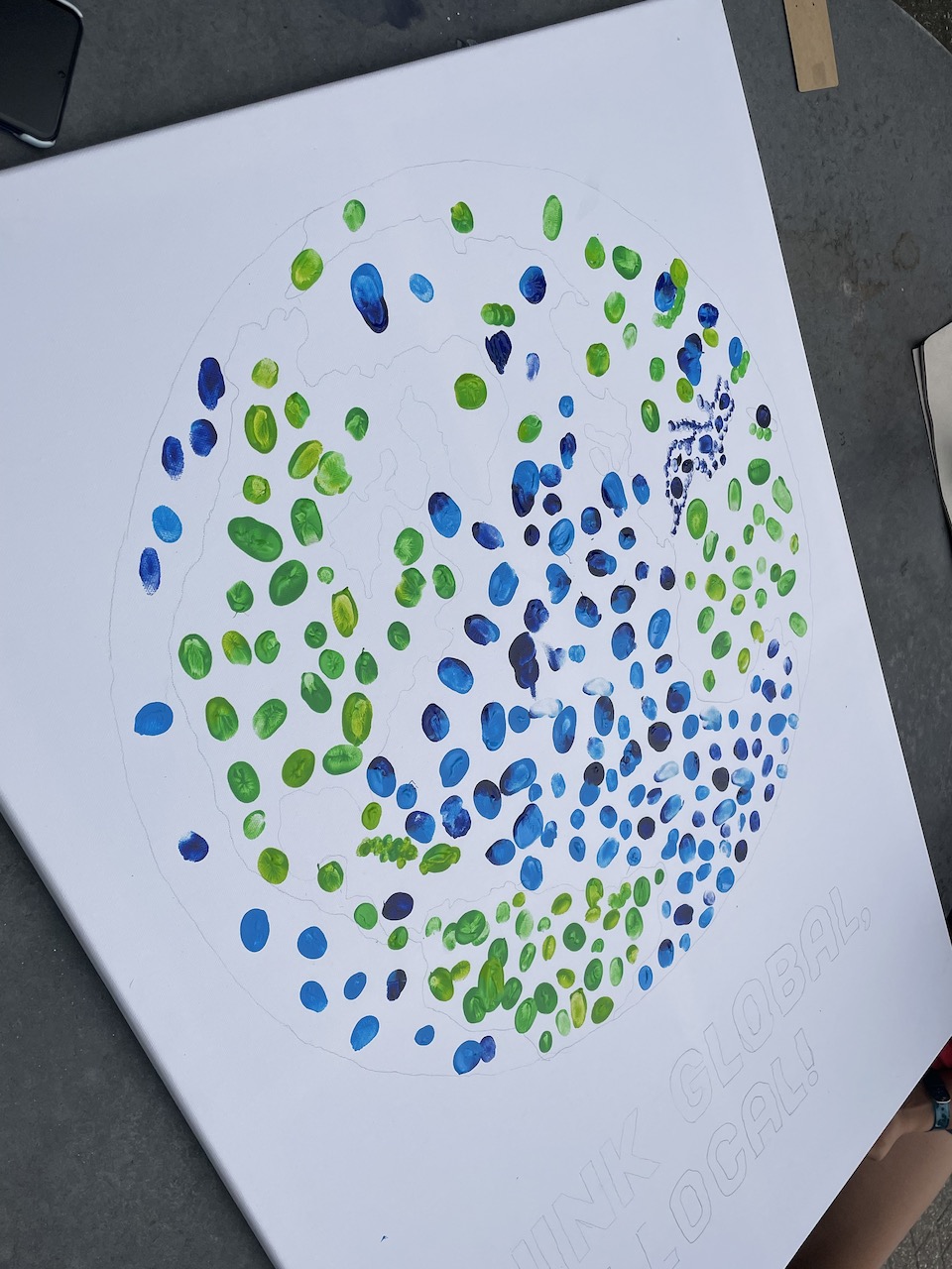Im Rahmen des Schulfests des Martinums im August 2022 erstellten die Vertreter*innen der SV ein Bild aus Fingerabdrücken, welches das Motto des Schulfestes aufgriff. Alle Besucher des Schulfests zum Thema "Think global, act local!" waren eingeladen, ihren Fingerabdruck auf einer Leinwand als Erinnerung an die Projekttage/das Schulfest zu hinterlassen.