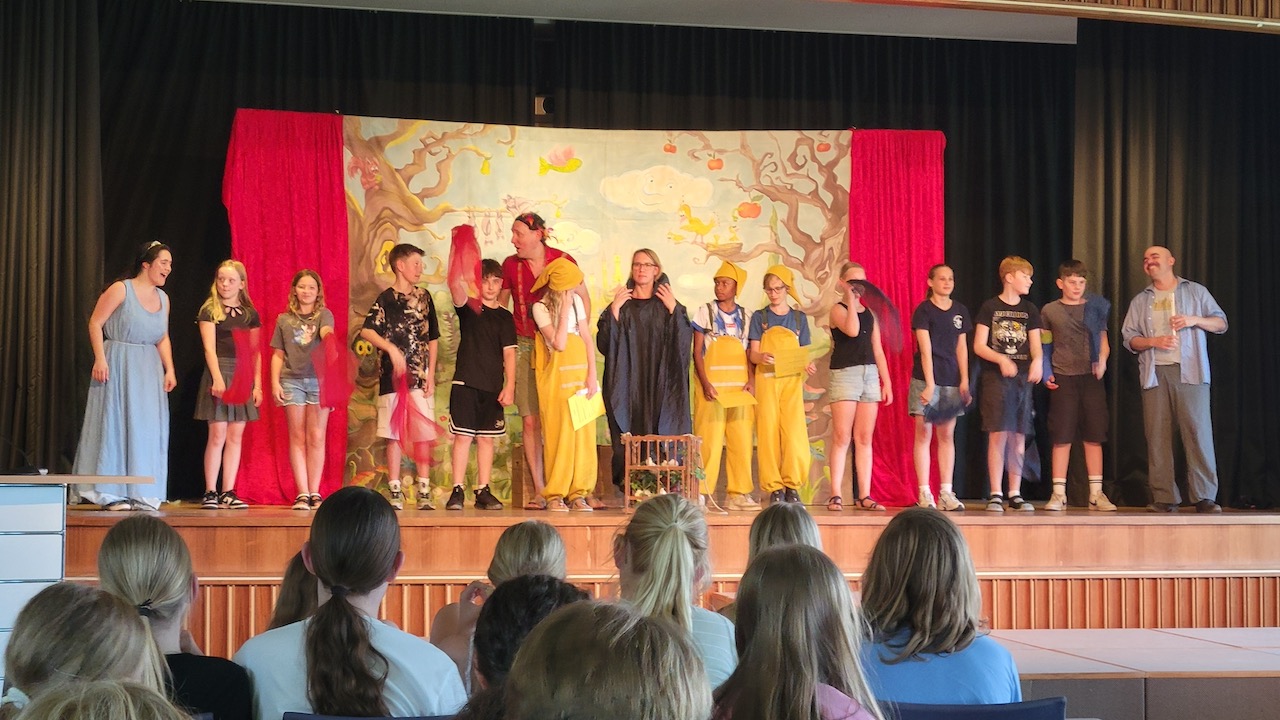 So fanden sich zwei Lehrerinnen in der Rolle der „Königin der Nacht“ wieder und überzeugten direkt durch gekonnte Improvisation und Bühnenpräsenz. Zahlreiche Schülerinnen und Schüler konnten in den Rollen der drei Knaben oder als Helfer für die Feuer- und Wasserprobe etwas Bühnenluft schnuppern.
