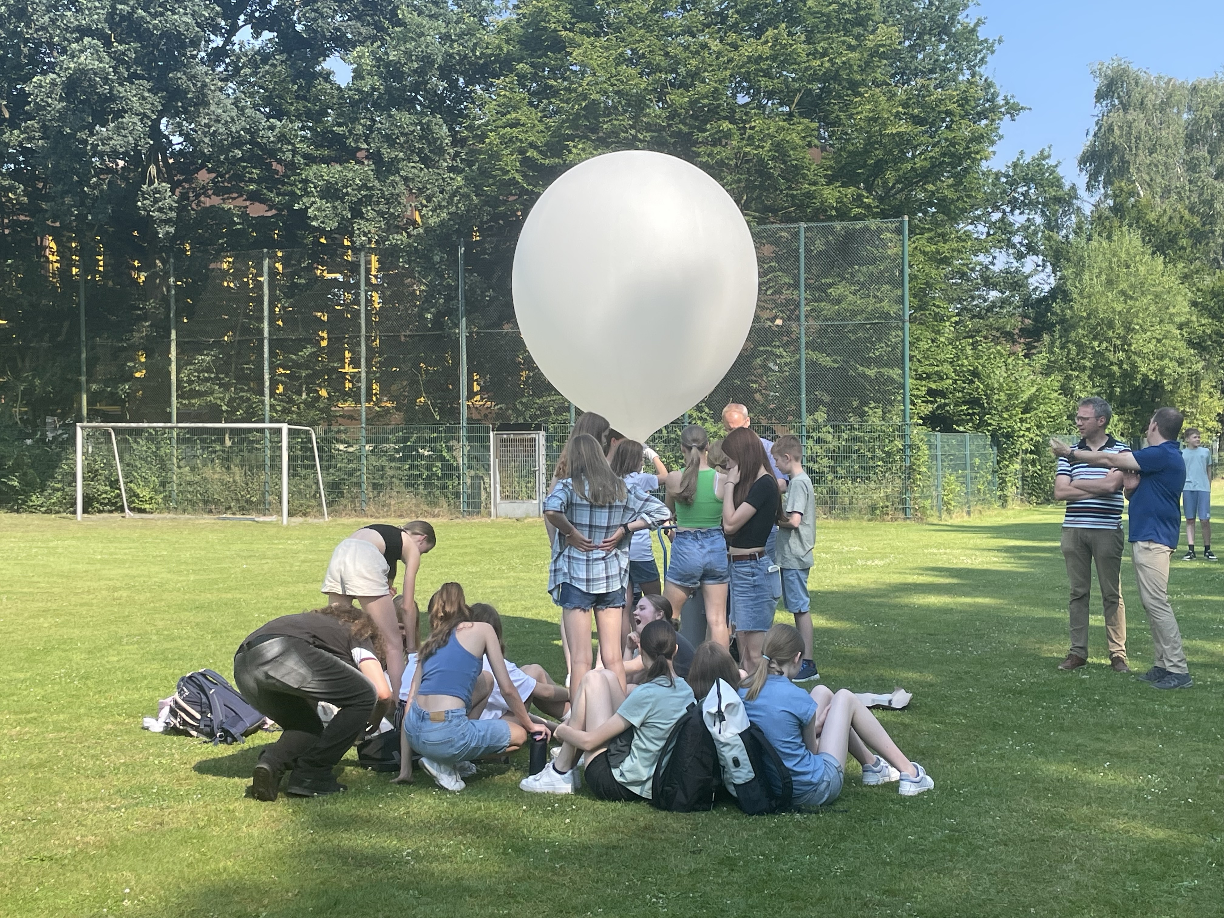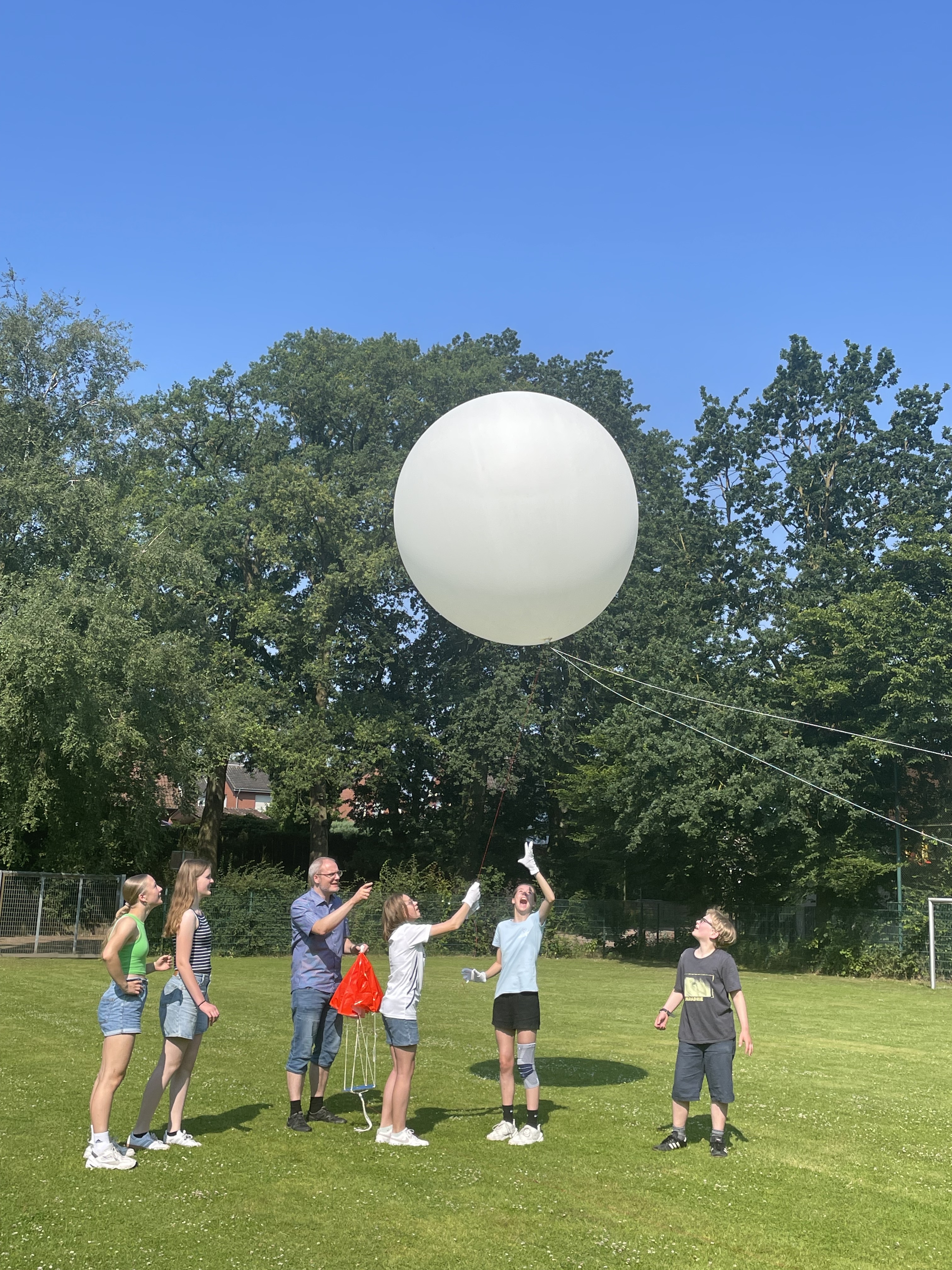 Im dritten Anlauf hat es endlich geklappt. Nachdem bereits 2018 und 2019 von dem MINT-Kurs ein Wetterballon gestartet wurde, die jedoch beide nie wiedergefunden wurden, gab es nun endlich den ersehnten Erfolg. Am 27.6.24 ist vom Sportplatz des Gymnasiums ein Wetterballon gestartet und am Ende auch wiedergefunden worden.