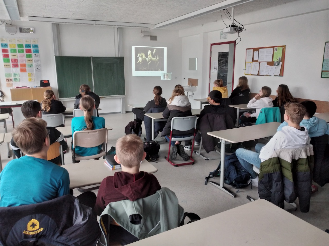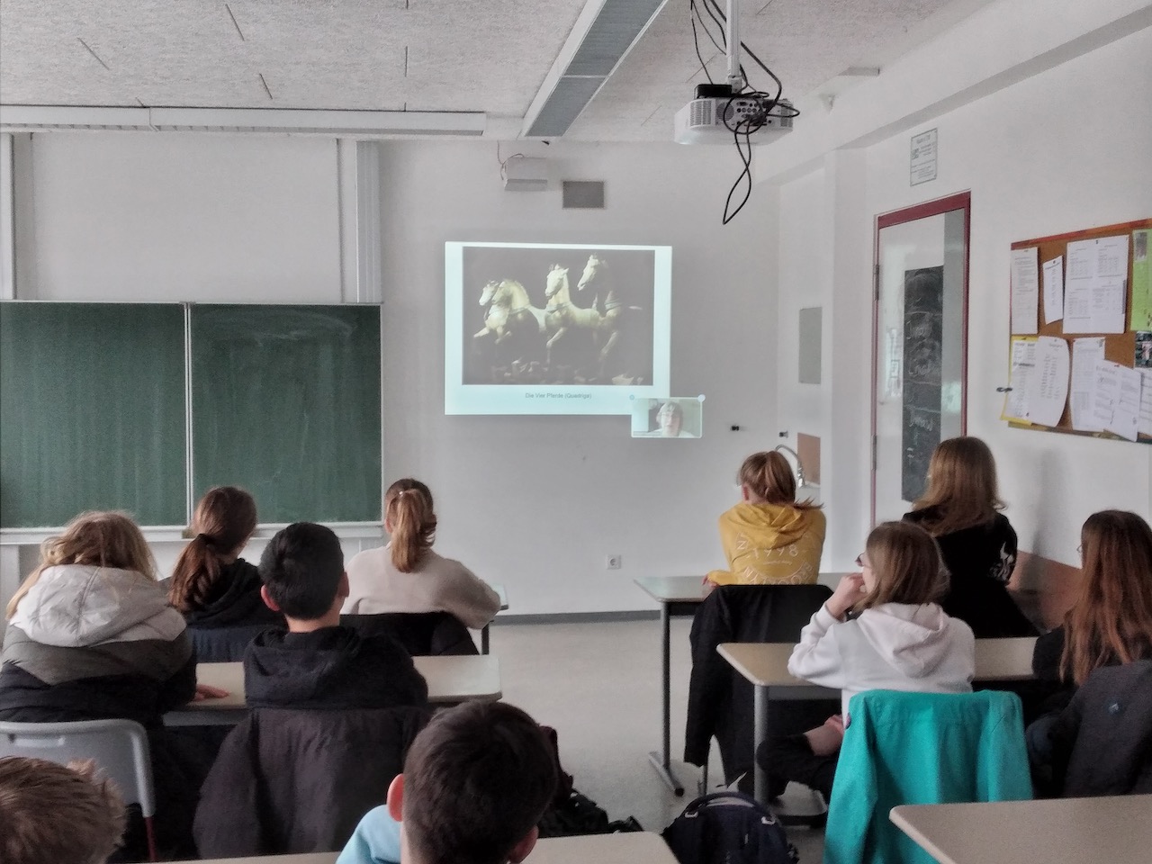 Eine positive Nachwirkung des Fernunterrichts der vergangenen Jahre ist ein ganz unverstaubtes Angebot einer Gruppe von Archäologen, die sich per Videoformat ins Klassenzimmer einladen lassen, zu einem Thema referieren und sich allen möglichen Fragen stellen. Dieses Angebot nahmen unsere Lateingruppen von Jahrgangsstufe 7 sehr gerne an, finanziell unterstützt durch unseren Förderverein.