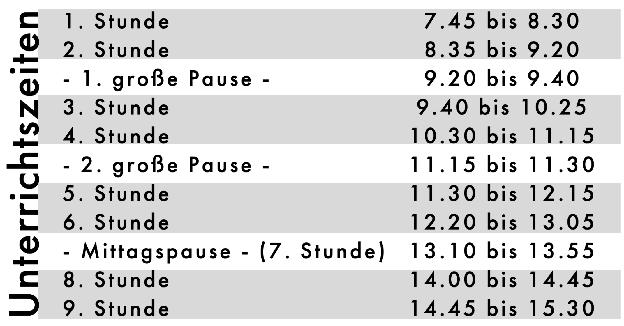 Dem folgenden Raster folgen die Unterrichtszeiten am Gymnasium Martinum: